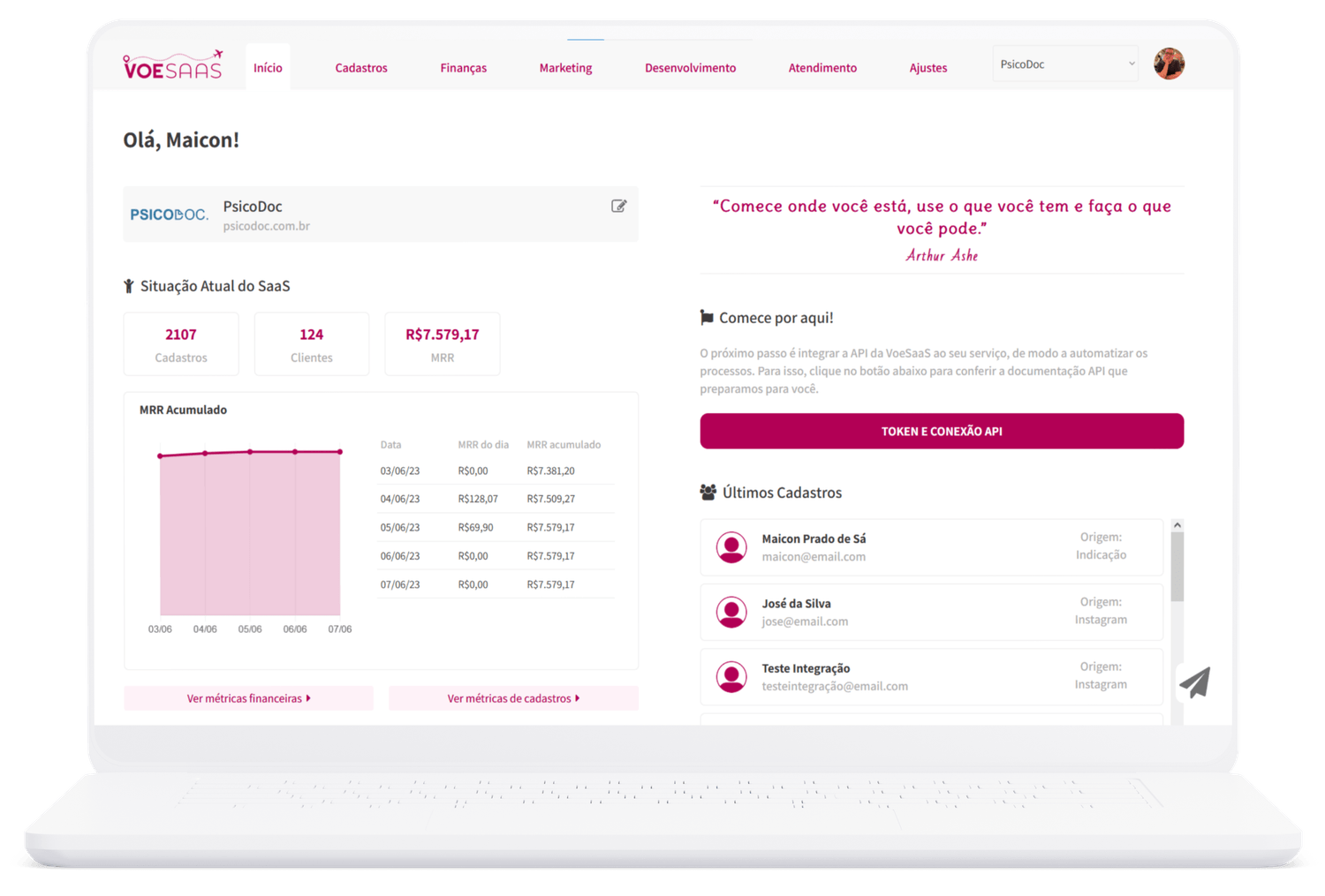 ✅ Métricas claras – Relatórios automáticos para entender o crescimento do SaaS.
